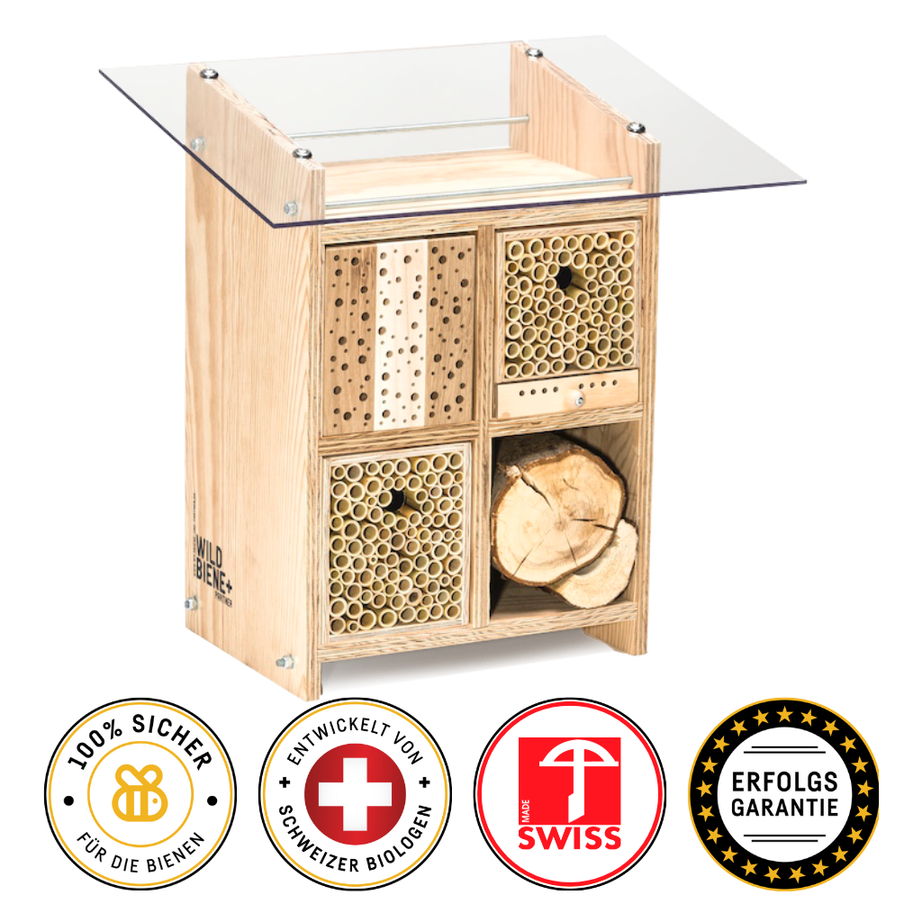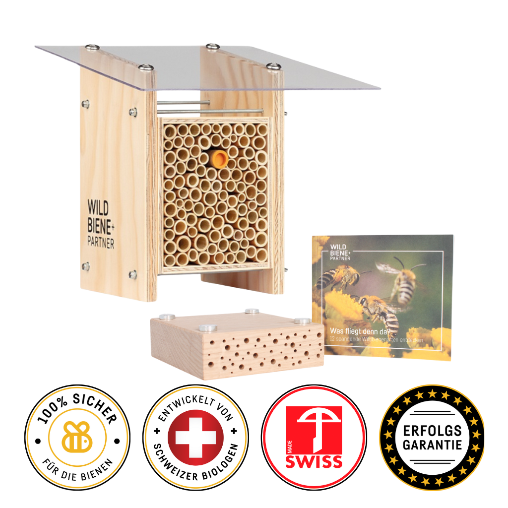 Mais le BeeHome peut aussi devenir un lieu de nidification pour d'autres espèces d'abeilles sauvages fascinantes. Commence ton aventure dès maintenant !