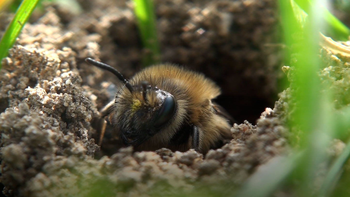 Tom te montre dans la vidéo quelles sont les mesures prises pour pouvoir favoriser le plus grand nombre possible d'abeilles sauvages et d'autres insectes pollinisateurs.