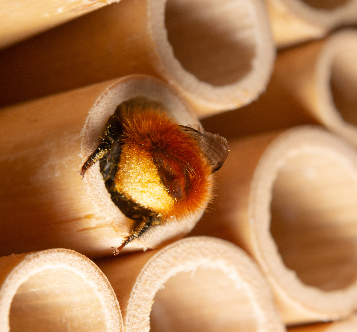 Il n'existe pas de taille minimale pour les surfaces permettant de créer des sites de nidification pour les abeilles sauvages. Les surfaces plus grandes ont plus d'effet, mais dans les zones d'habitation, plusieurs petites surfaces à différents endroits sont également utiles.