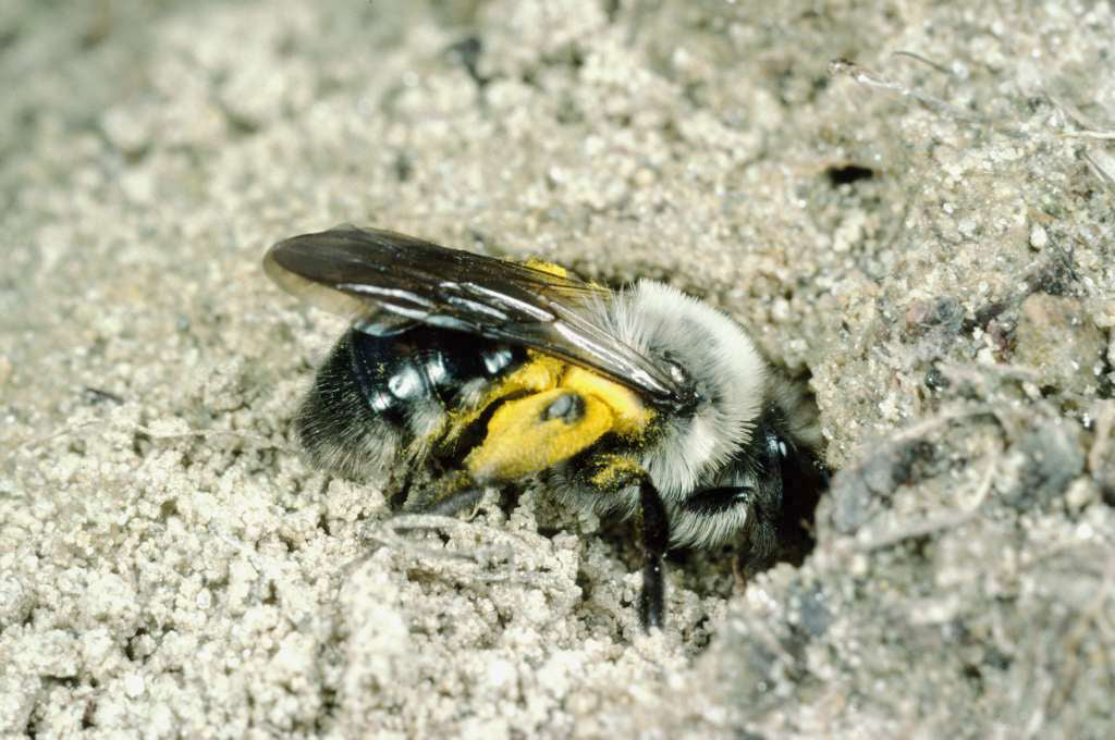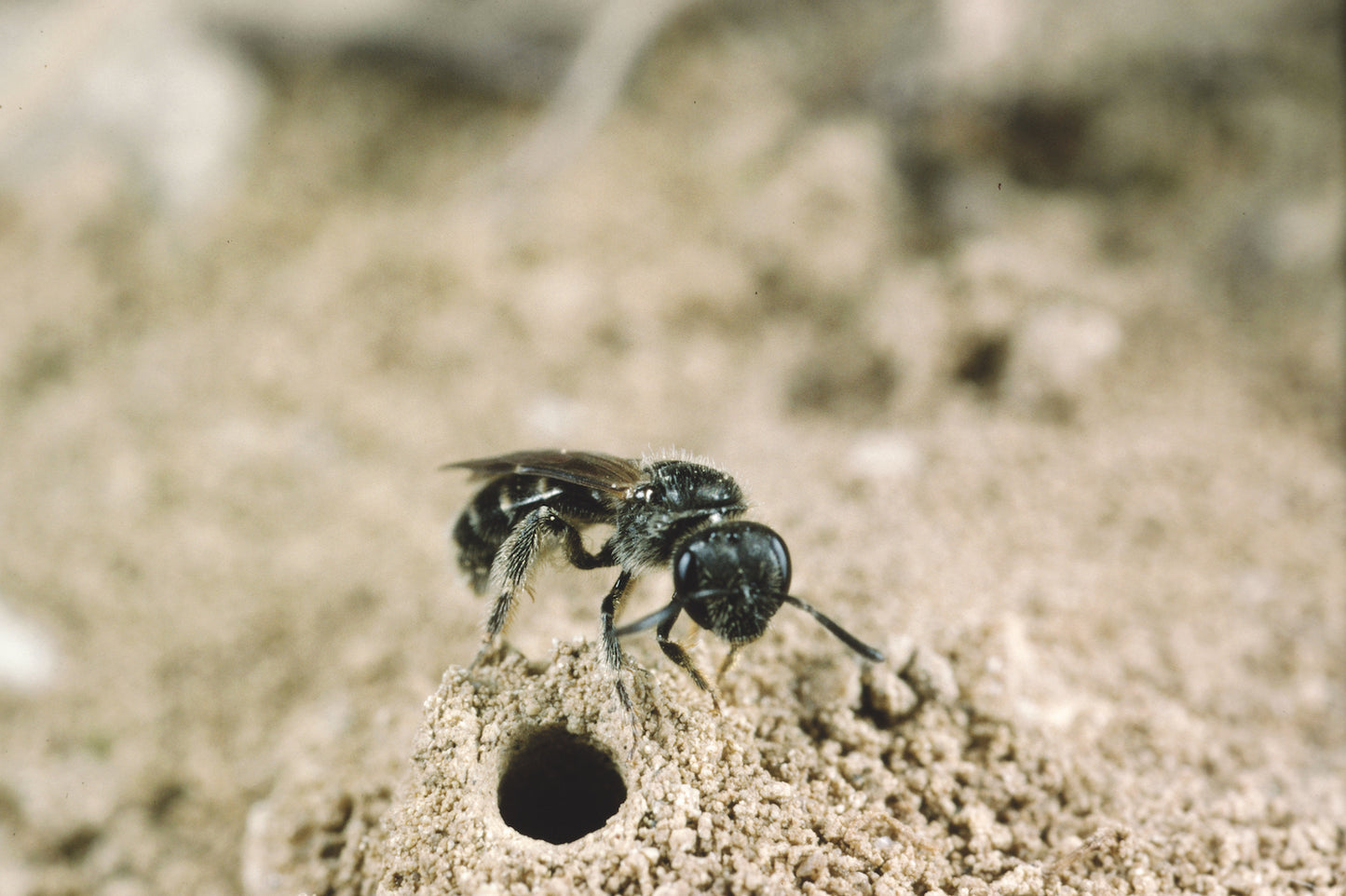 Environ trois quarts de nos espèces d'abeilles nidicoles indigènes utilisent le sol comme lieu de nidification et ont besoin pour cela de conditions spécifiques. Il est particulièrement remarquable que de nombreuses espèces menacées appartiennent à ce groupe. Il est donc très important de soutenir et de promouvoir leurs habitats en leur fournissant des structures de sol ouvertes.